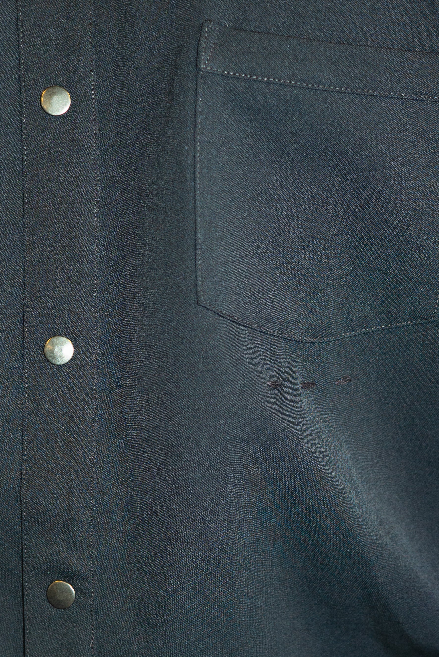 The ROGER overshirt is inspired by the classic blazer, taking the DNA of the staple jacket and reimagined into a modern day layering piece. Made out of a 100% 280 gram wool twill fabric, lined in Cupro, and supported by lightly padded shoulders, this shirt jacket incorporates the elements of the blazer into a cropped, boxy fit overshirt with understated drape. The wool fabric allows for a flowy shape, the lining allows for softness on the skin, and the light shoulder pads allow for slight structure to construct a frame. Signature hand embroidery under chest pocket.